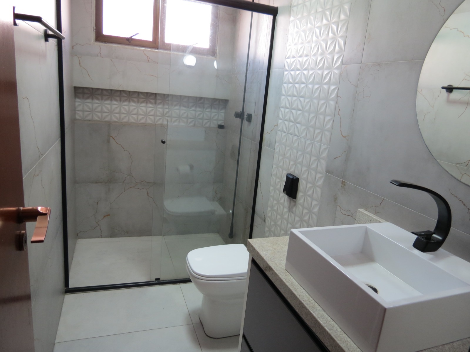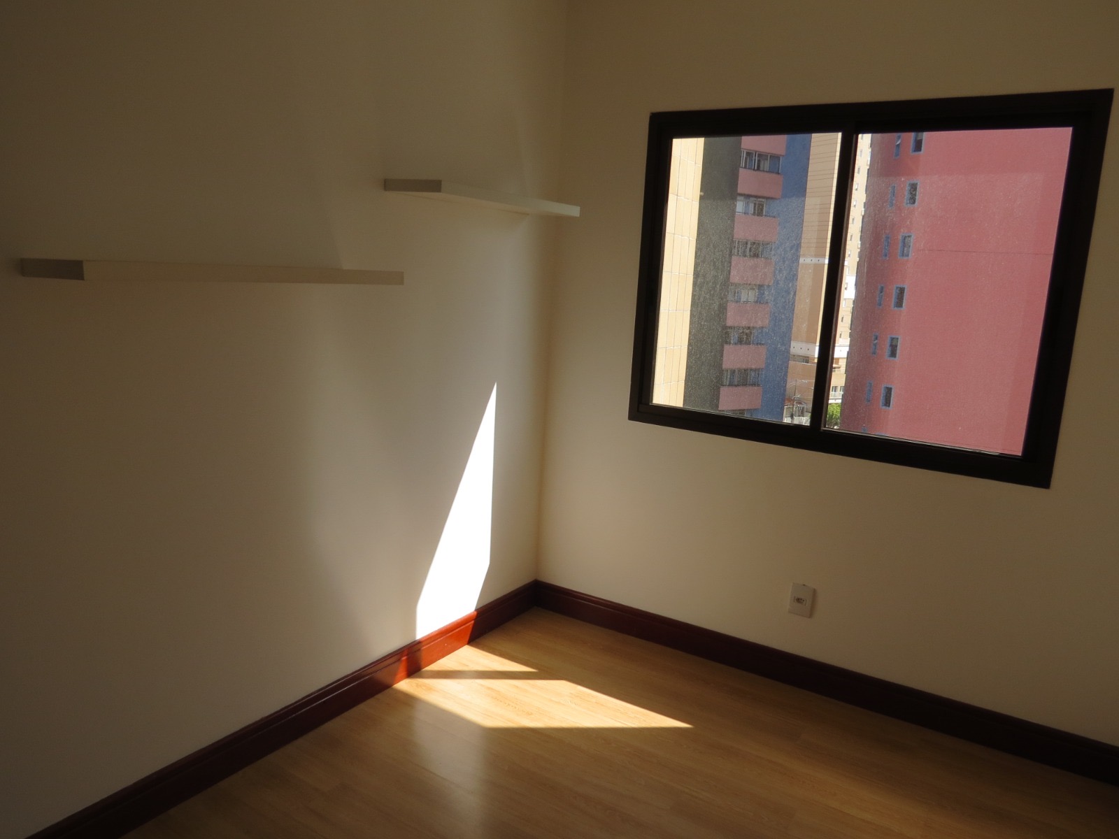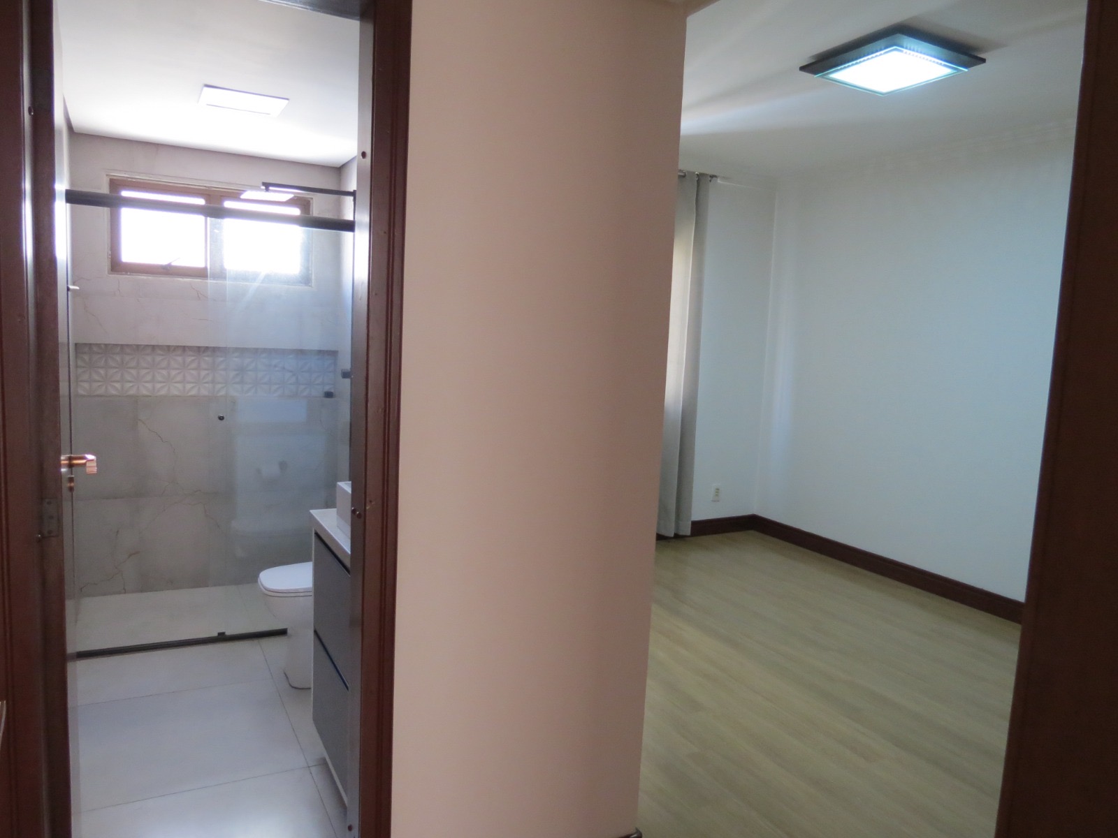 Acabamentos em porcelanato e laminado de madeira complementam o padrão de qualidade do imóvel.