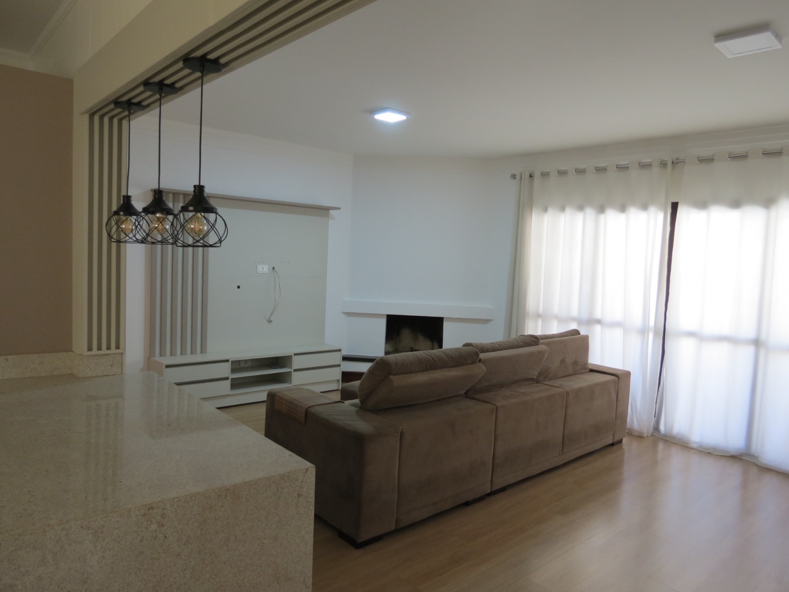 A planta é bem distribuída, com sala ampla para dois ambientes, lareira e sacada, proporcionando conforto térmico e excelente iluminação natural.