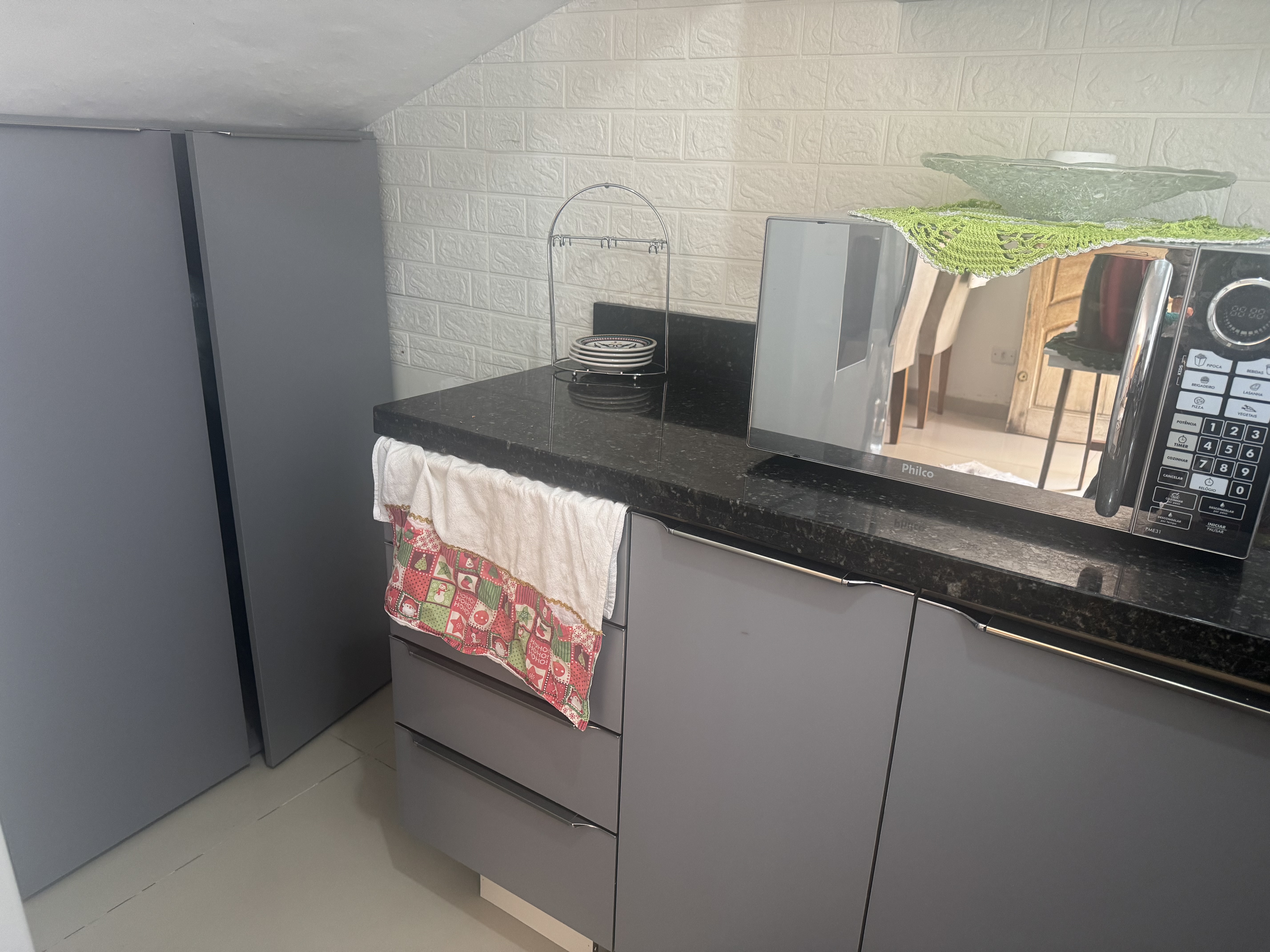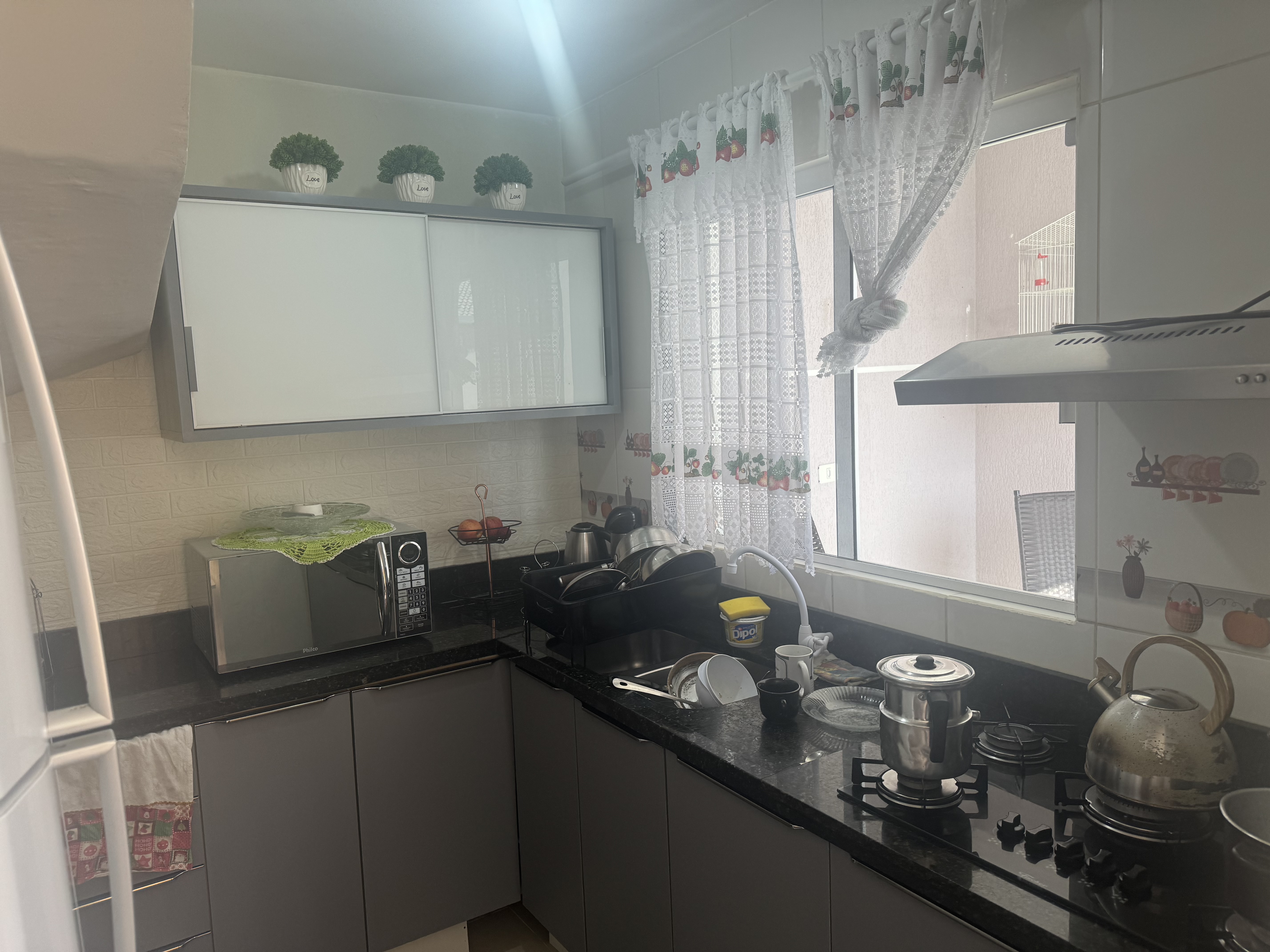 Imóvel mobiliado, com armários na cozinha, banheiro e sala.